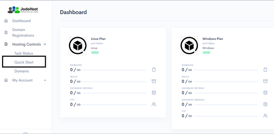 Click on the option “Quick Start” under “Hosting Controls”.