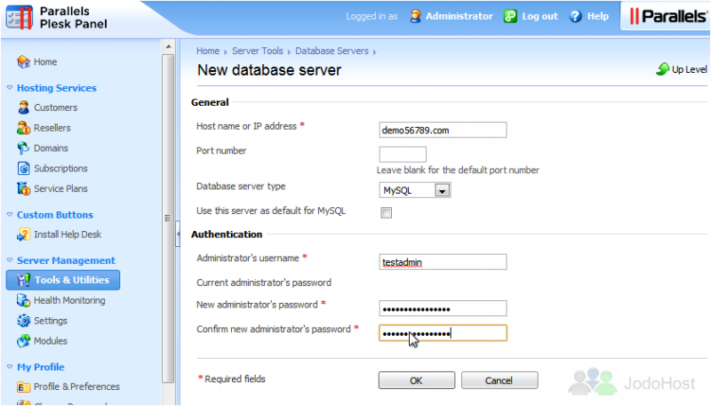 Plesk allows you to add additional Database servers for use by you and your customers.
